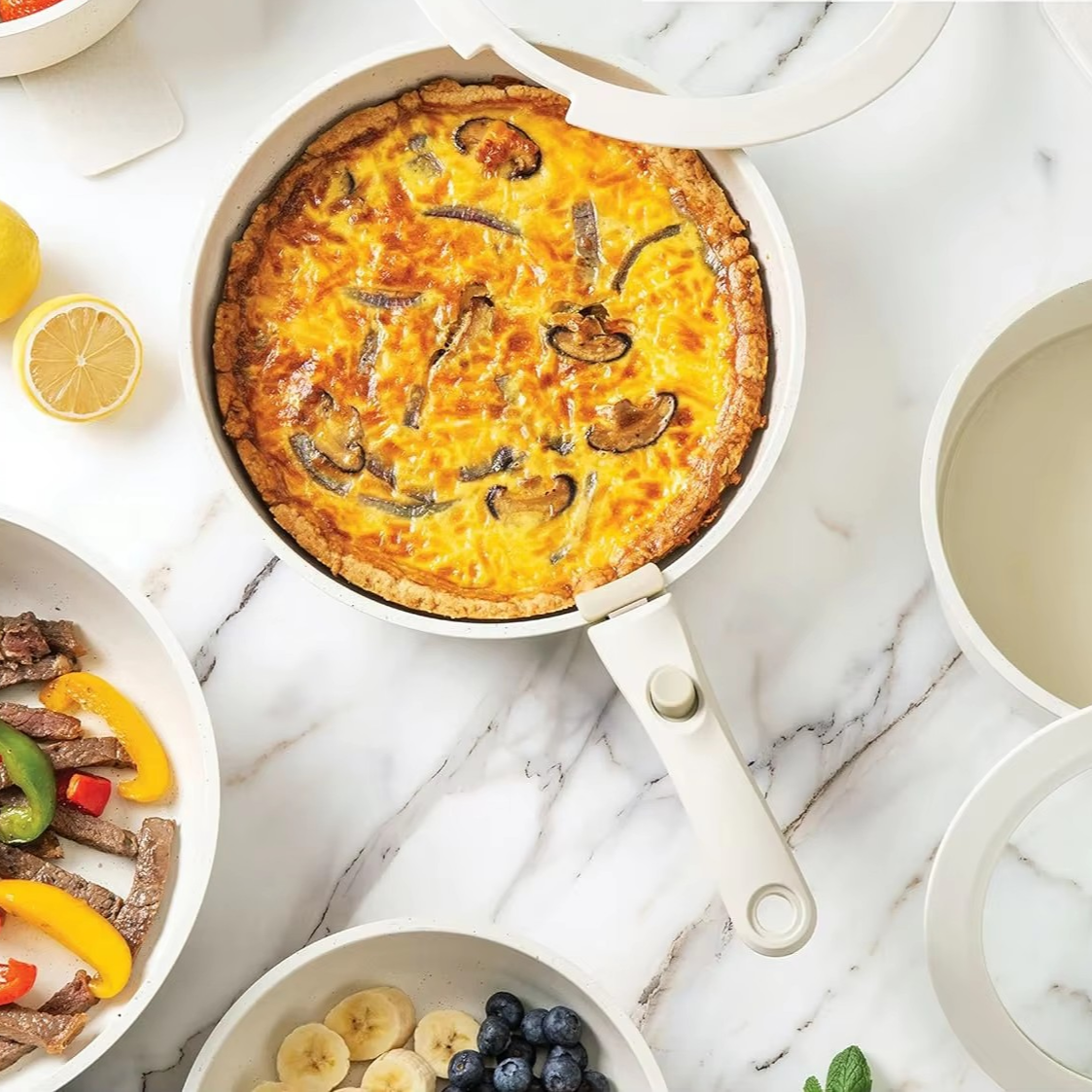 These cookware essentials are perfect for those who crave both convenience and functionality. The detachable handles allow you to effortlessly move from stovetop to oven, letting you create everything from quick sautés to baked casseroles—all in one pan! Plus, the handles come off for easy storage, saving valuable space in your cabinets or drawers. Whether you're cooking for a crowd or just yourself, this set gives you the freedom to cook more and store less. Say goodbye to cluttered cabinets and hello to sleek, efficient cooking!